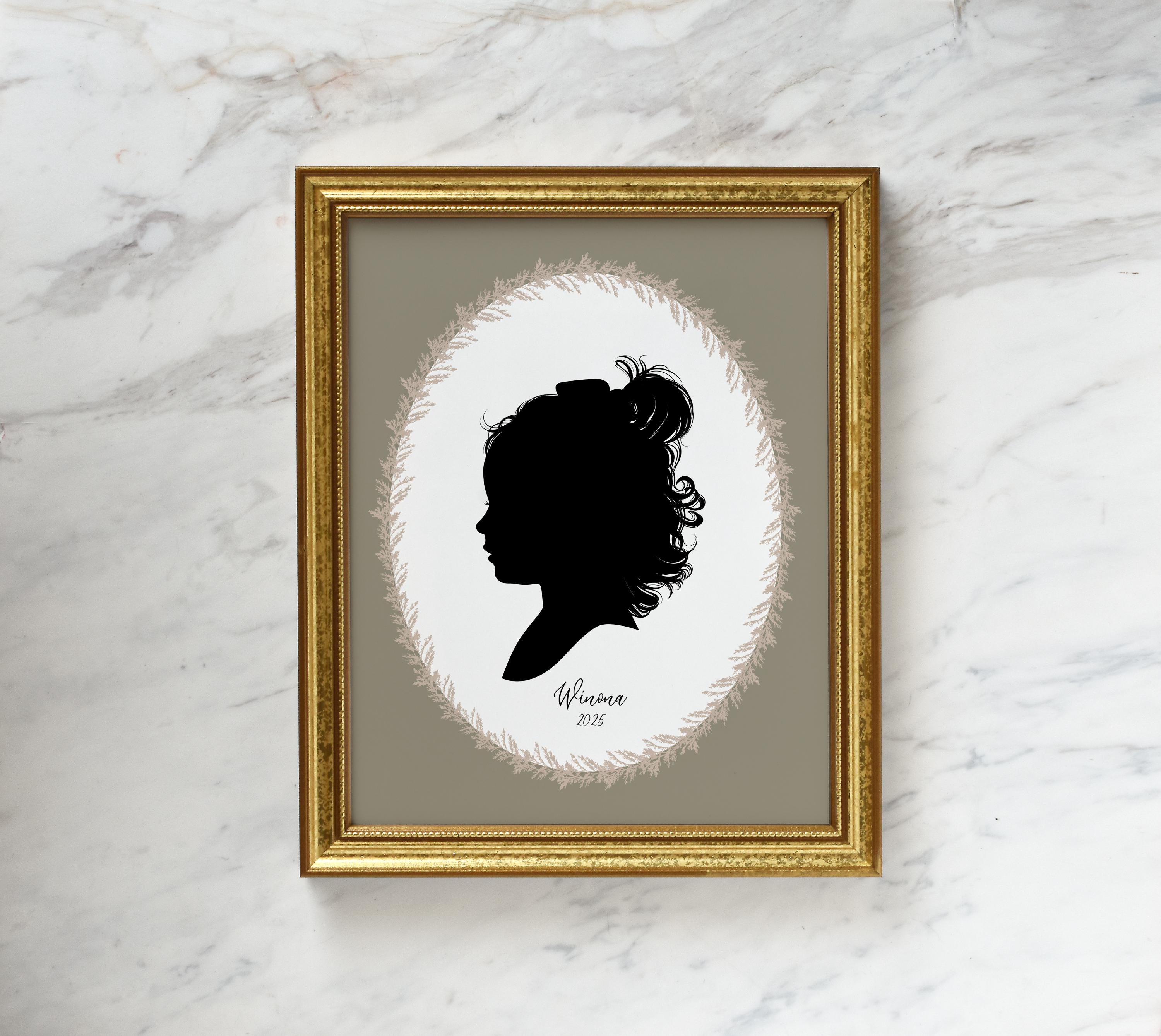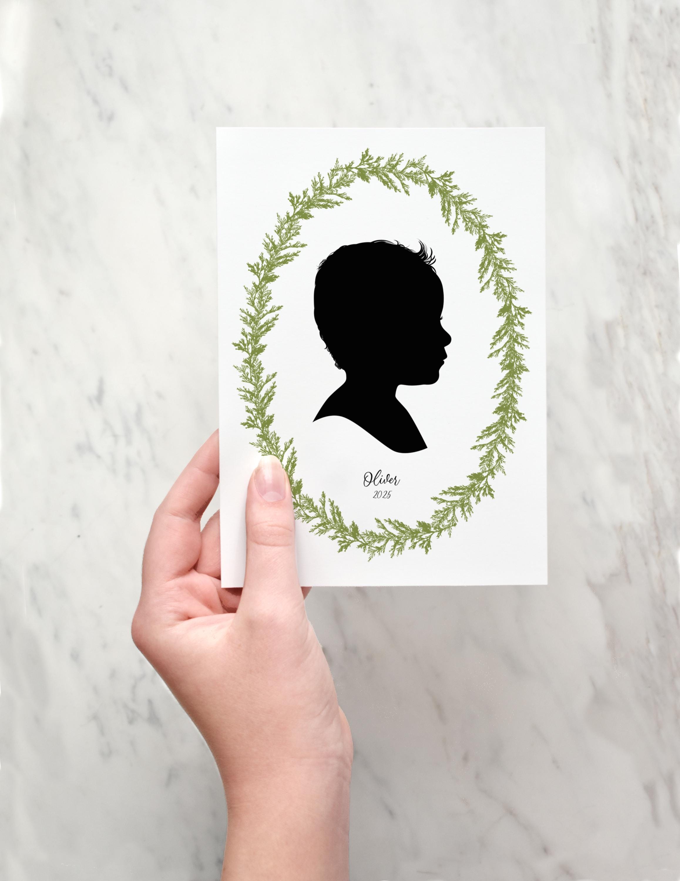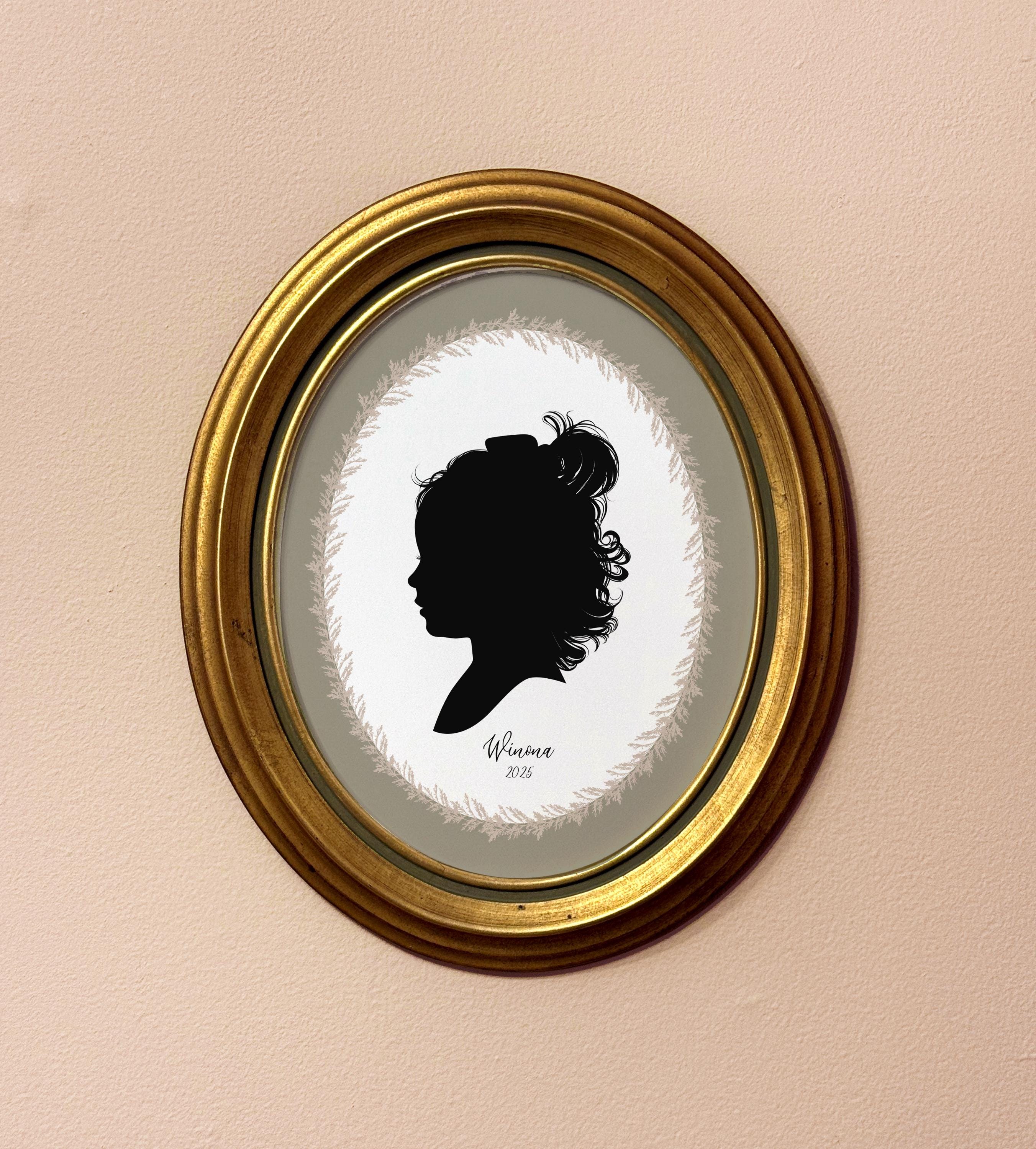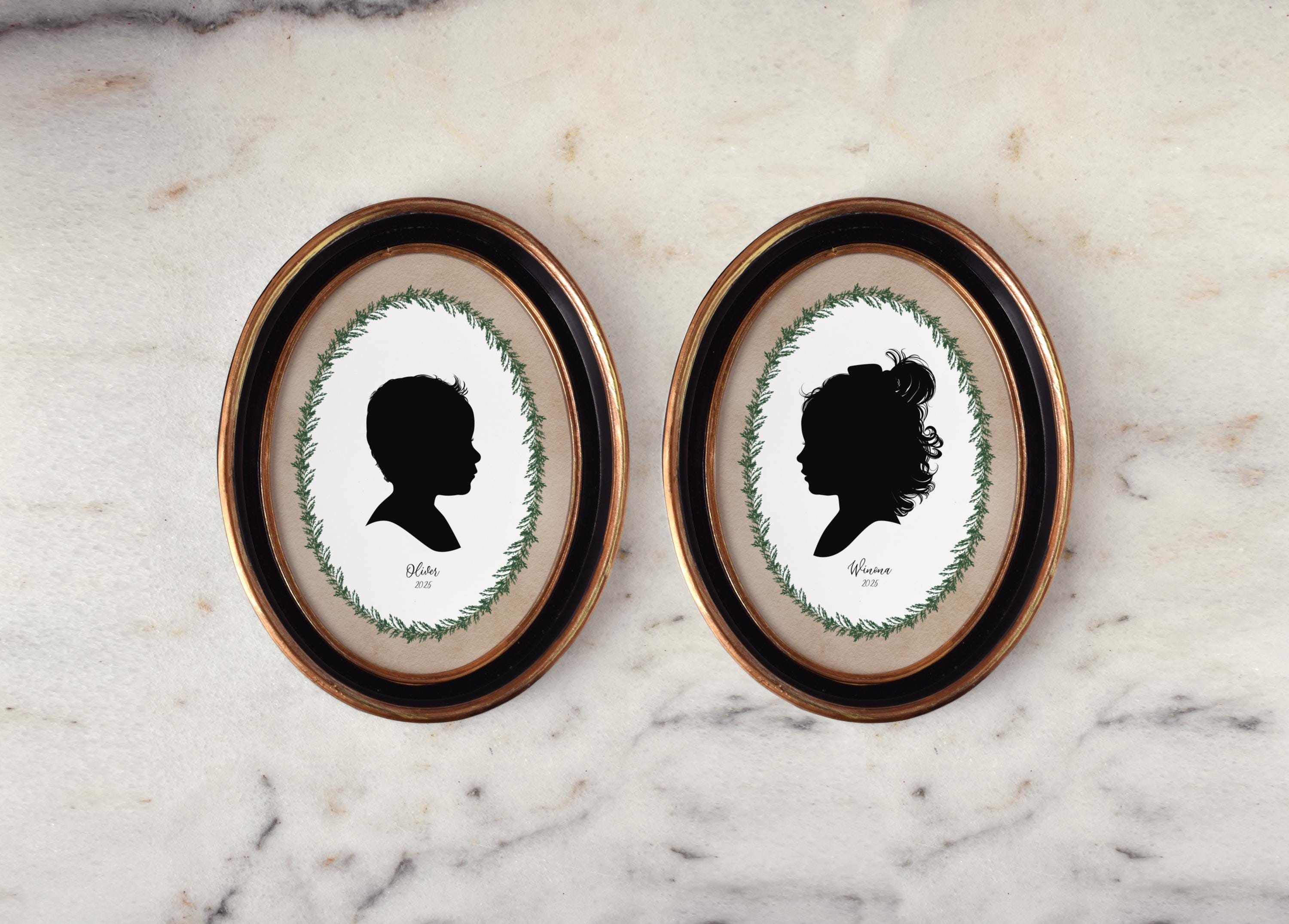 Each of my silhouettes are hand drawn using a mouse and graphics tablet in a manner very similar to traditional drawing with pen and ink. I make sure to capture all the sweet details in your photos to keep them looking natural and true to life, all the way from little wisps of hair to that cute upturned nose.