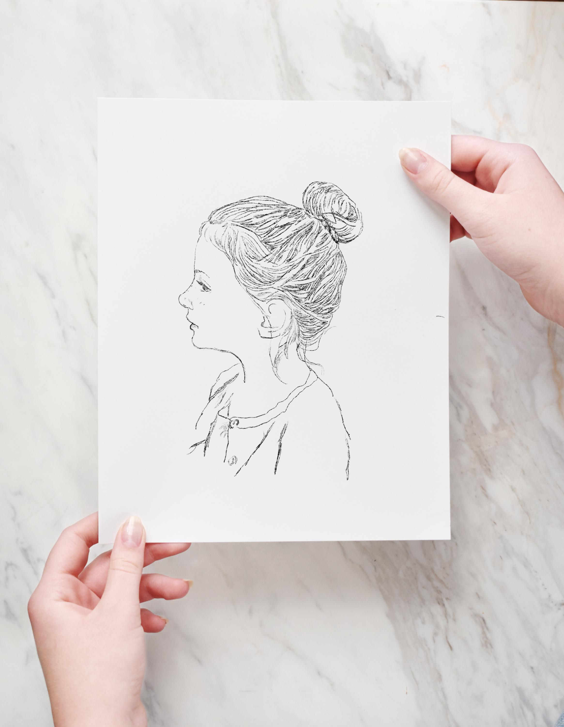 Each of my portraits are hand drawn using apple pencil in a manner very similar to traditional drawing with pen and ink. I make sure to capture all the sweet details in your photos to keep them looking natural and true to life, all the way from little wisps of hair to that cute upturned nose.